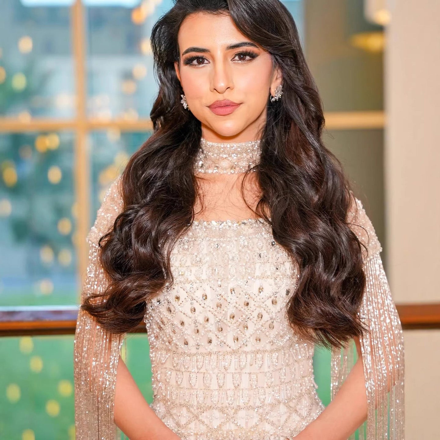 Luxury beige evening dress with crystal tassels and pearl beading, designed for formal occasions, galas, weddings, and elegant evening events.