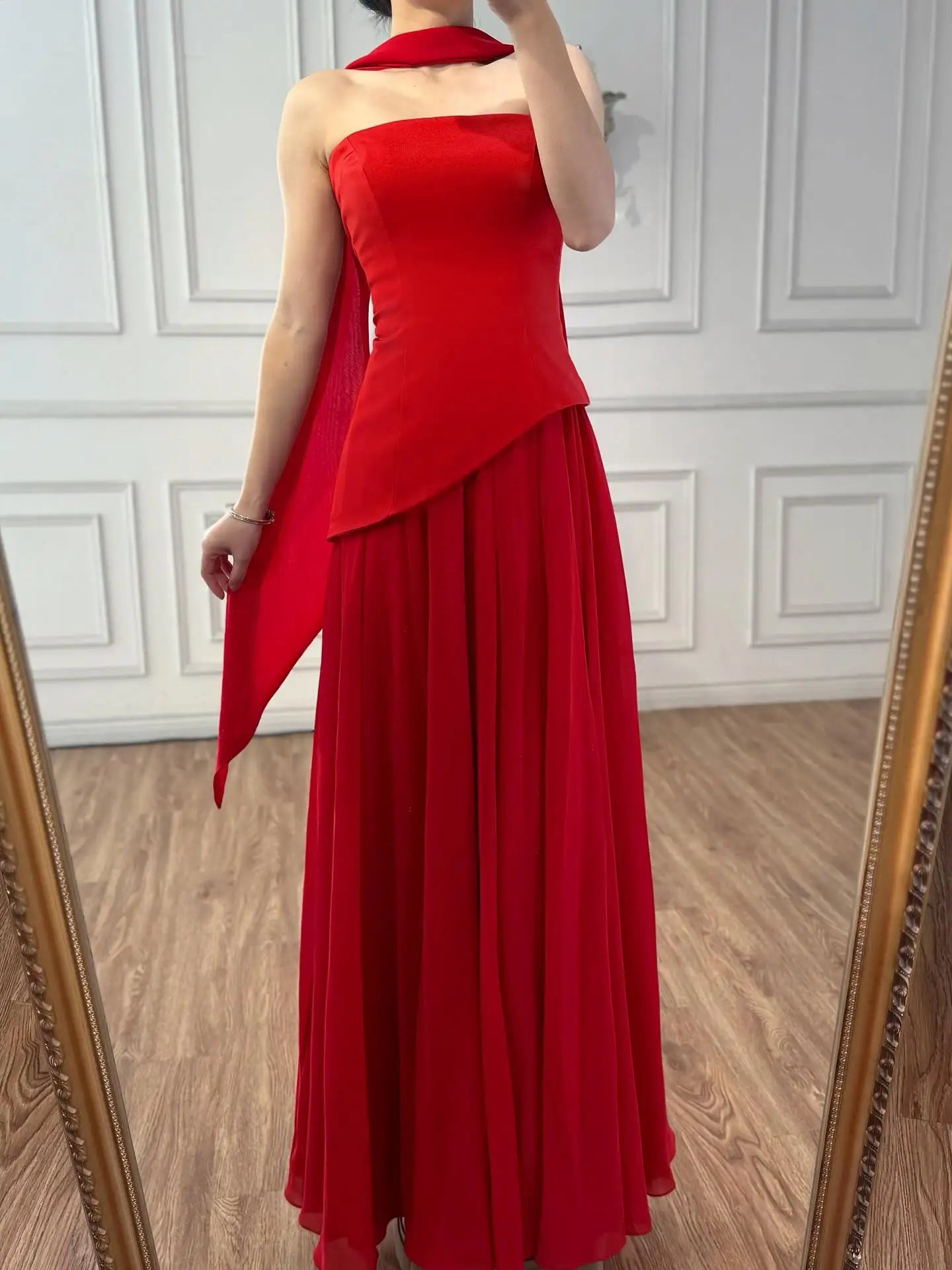 Luxury Lilac Elegant Evening Dress Flowing Skirt LA73165