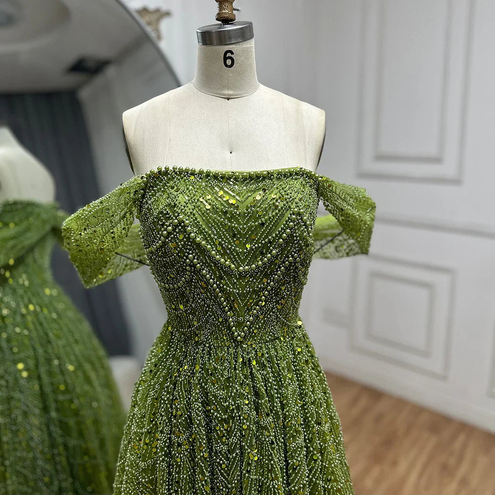 Luxury Beaded Champagne Off-Shoulder Evening Dress LA72738