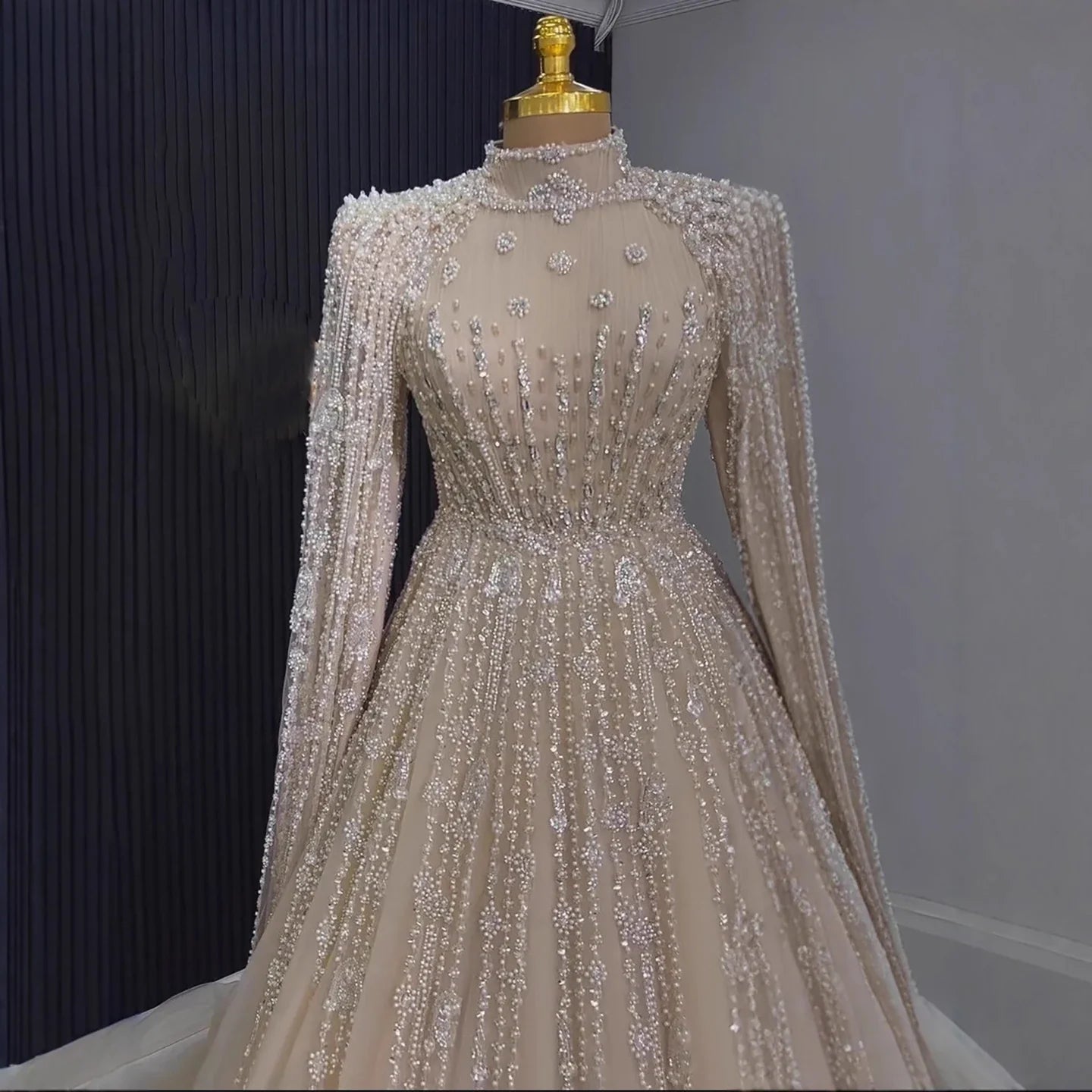 Luxury Nude Muslin Modest Beaded Evening Dress with Cape LA73271
