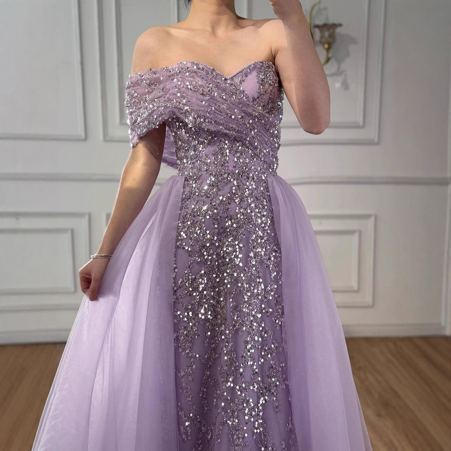 Luxury Arabic blue one shoulder mermaid evening dress with beaded details and elegant skirt design, perfect for formal occasions and evening events.