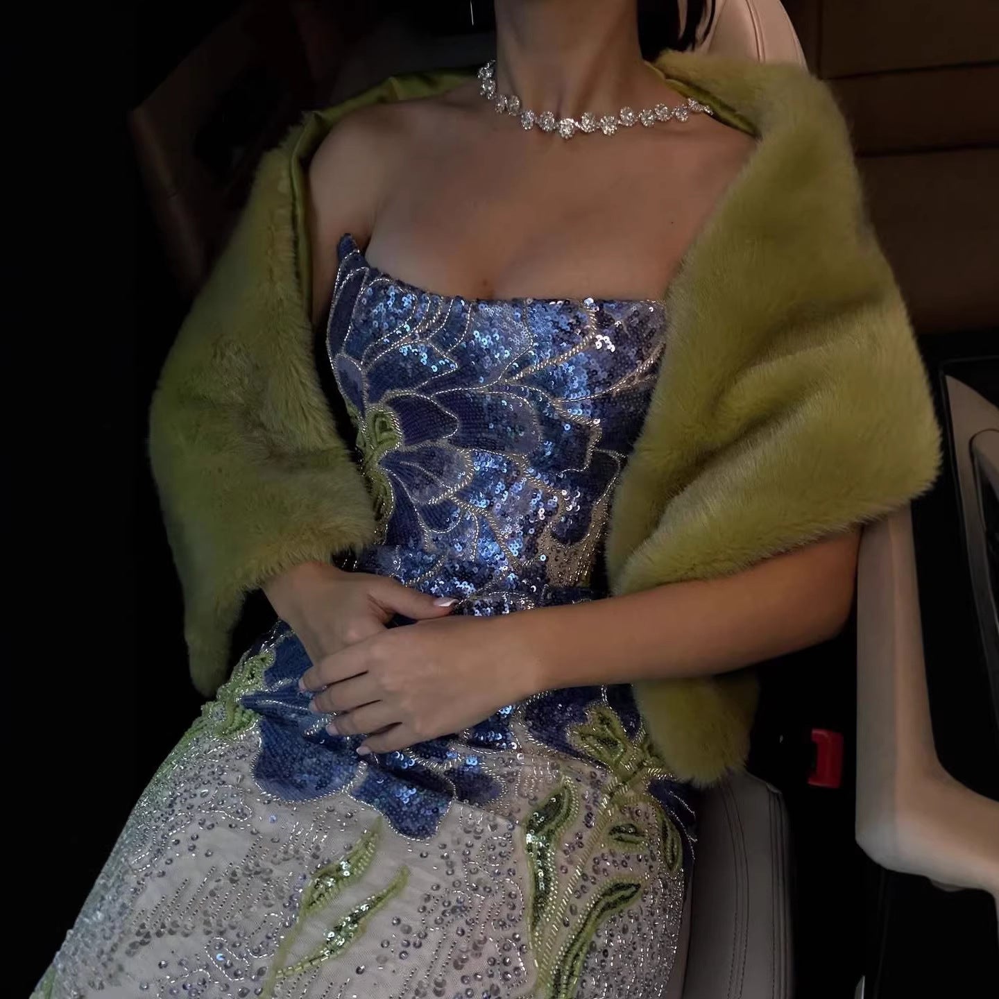 Luxury Blue Strapless Beaded Mermaid Evening Dress LA73538