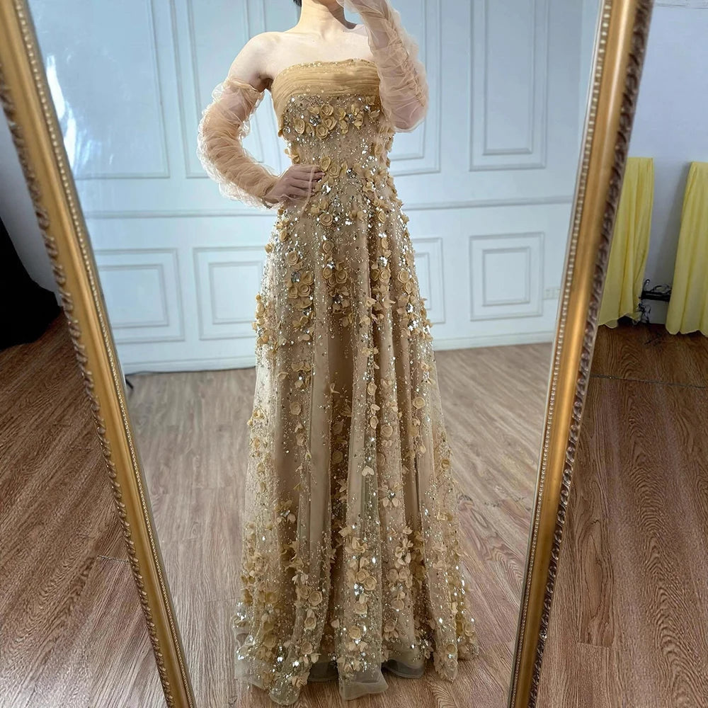 Romantic pink evening dress LA72912 with 3D floral appliques and matching gloves. Perfect for Arabic weddings or elegant formal parties.