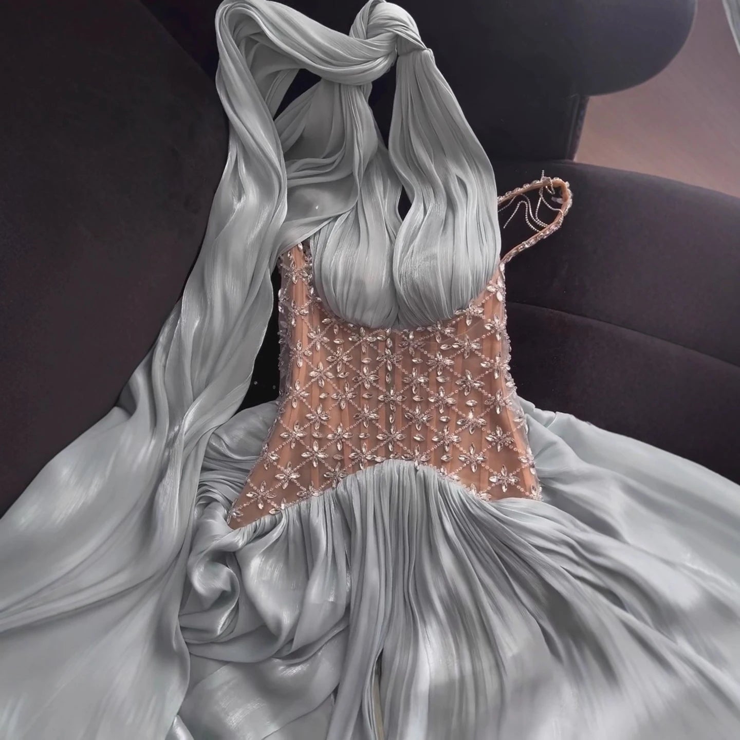Luxury Turquoise Crystal Beaded A-Line Evening Dress LA73421