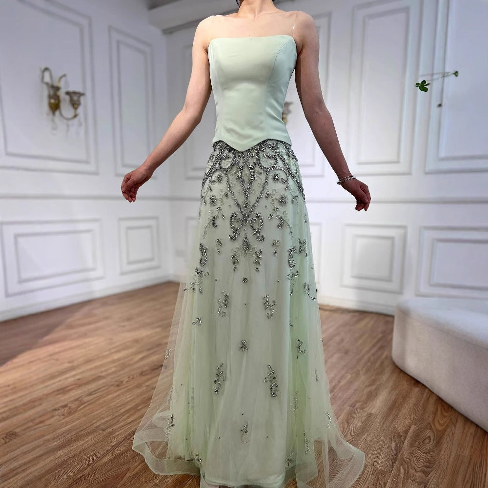Elegant Sage Green Beaded A-Line Evening Dress Gown LA72809