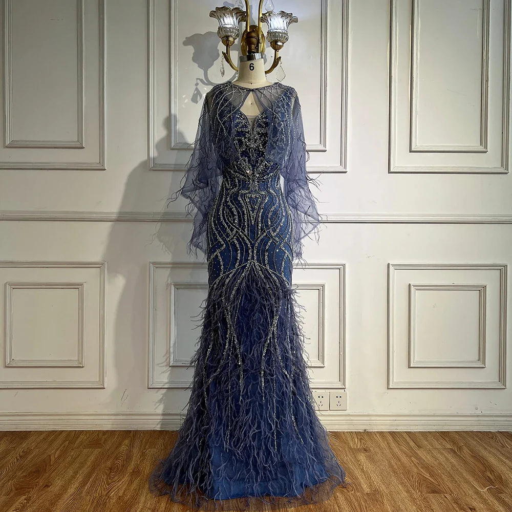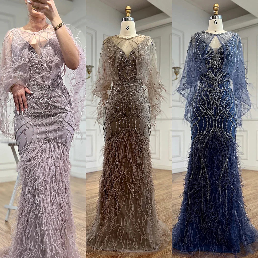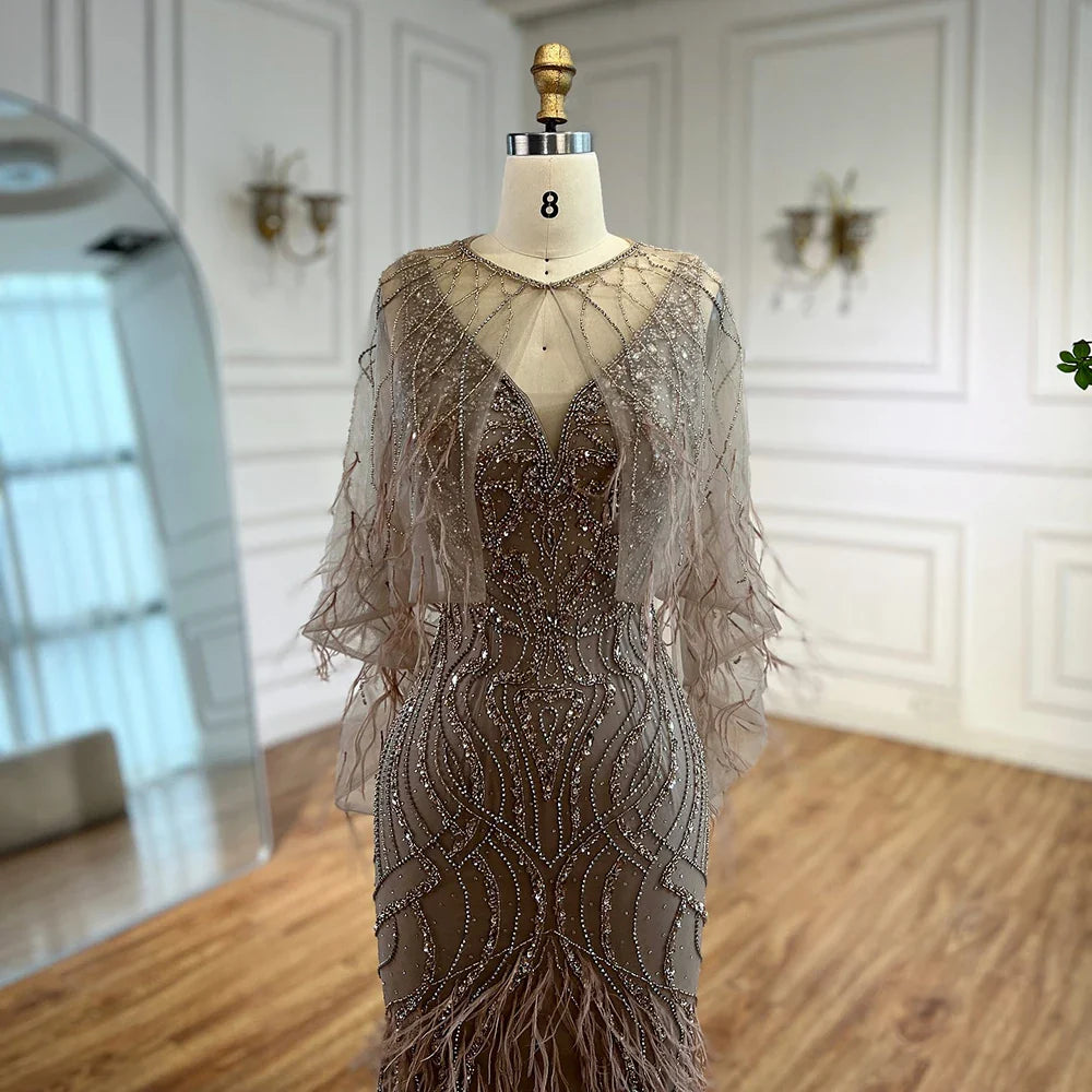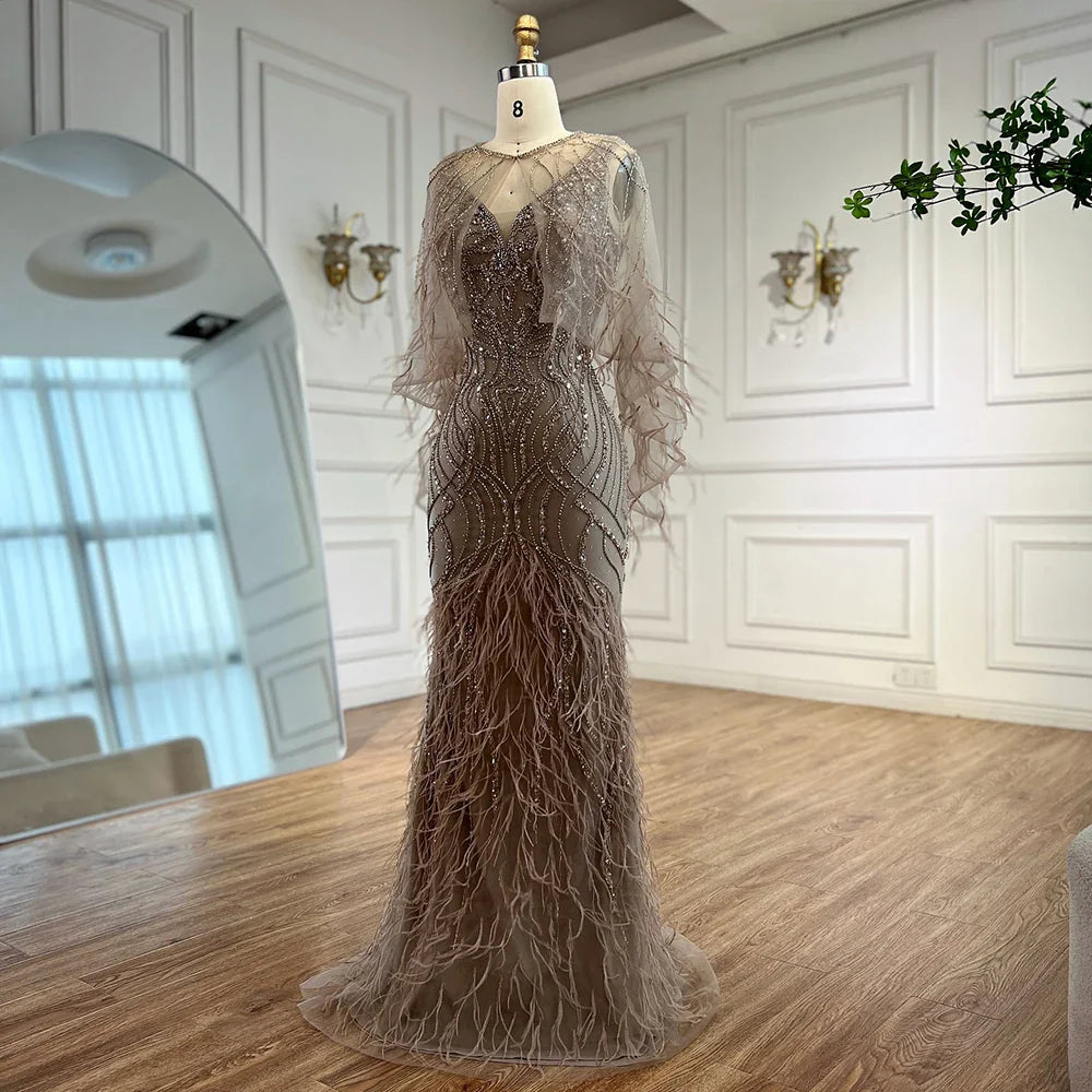 Luxury Caramel Feather Beaded Mermaid Evening Dress LA71866