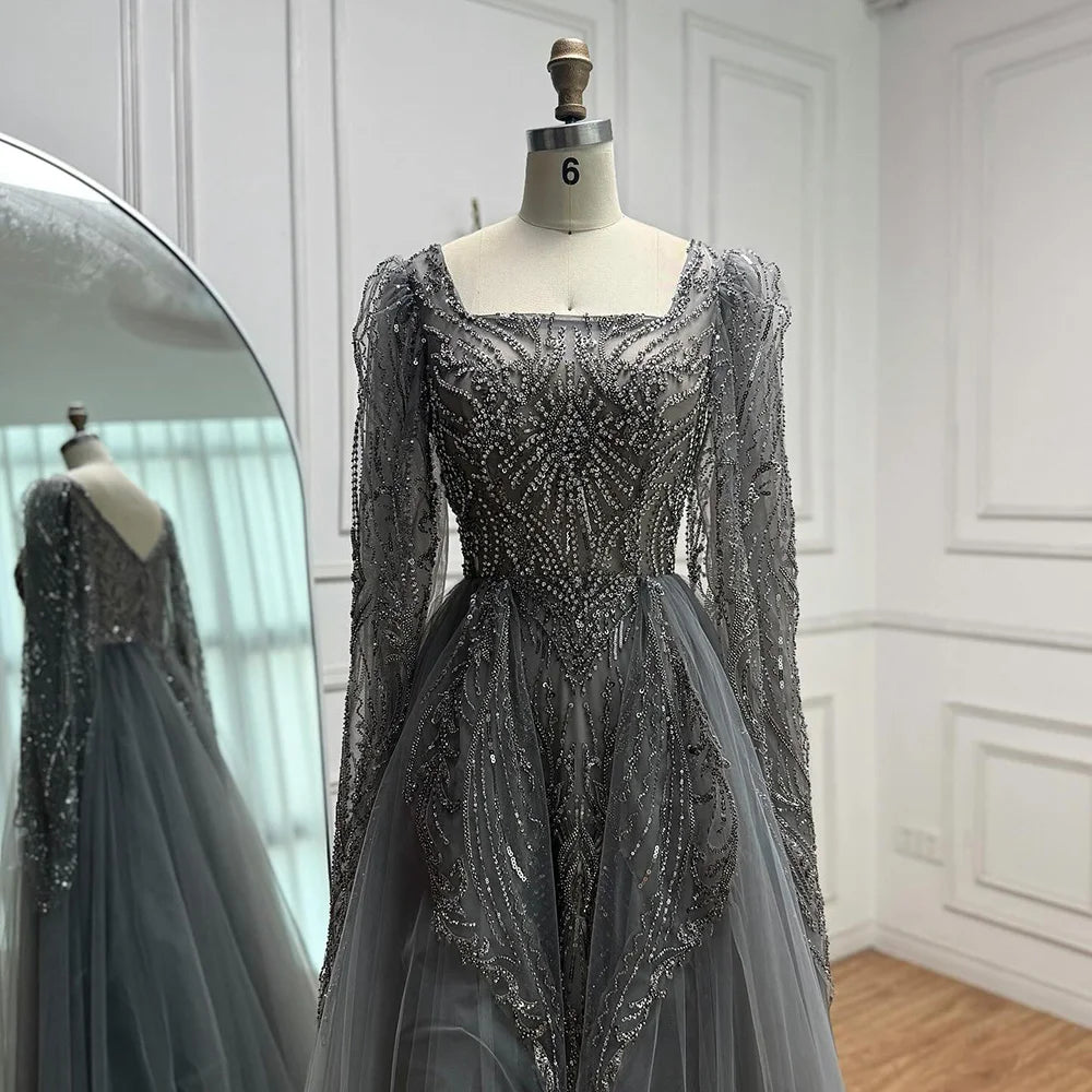 Luxury Gray A Line Beaded Evening Dress for Women LA73088