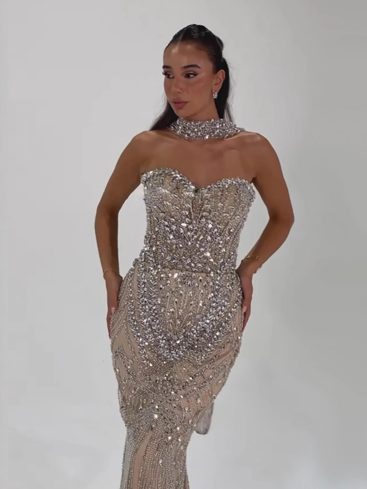Luxury Nude Crystal Beaded Mermaid Evening Dress LA73375
