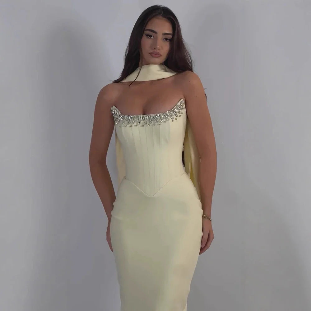 Luxury Yellow Crystal Beaded Mermaid Luxury Evening Dress Elegant LA73175A