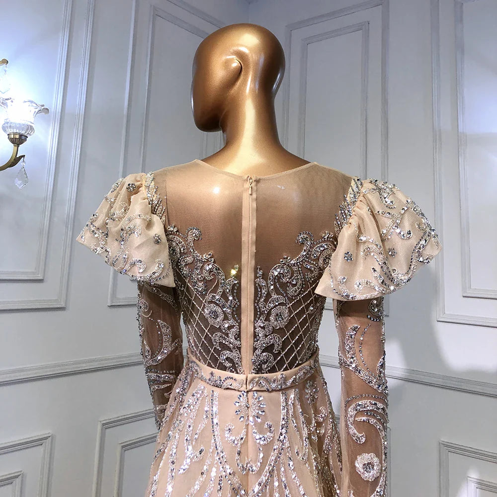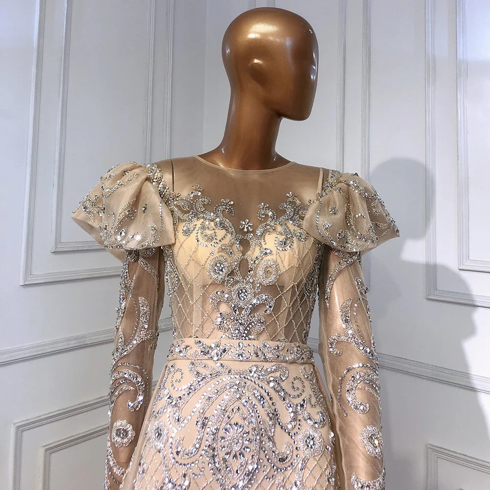 Luxury Nude Beaded Mermaid Evening Dress with Overskirt LA71352
